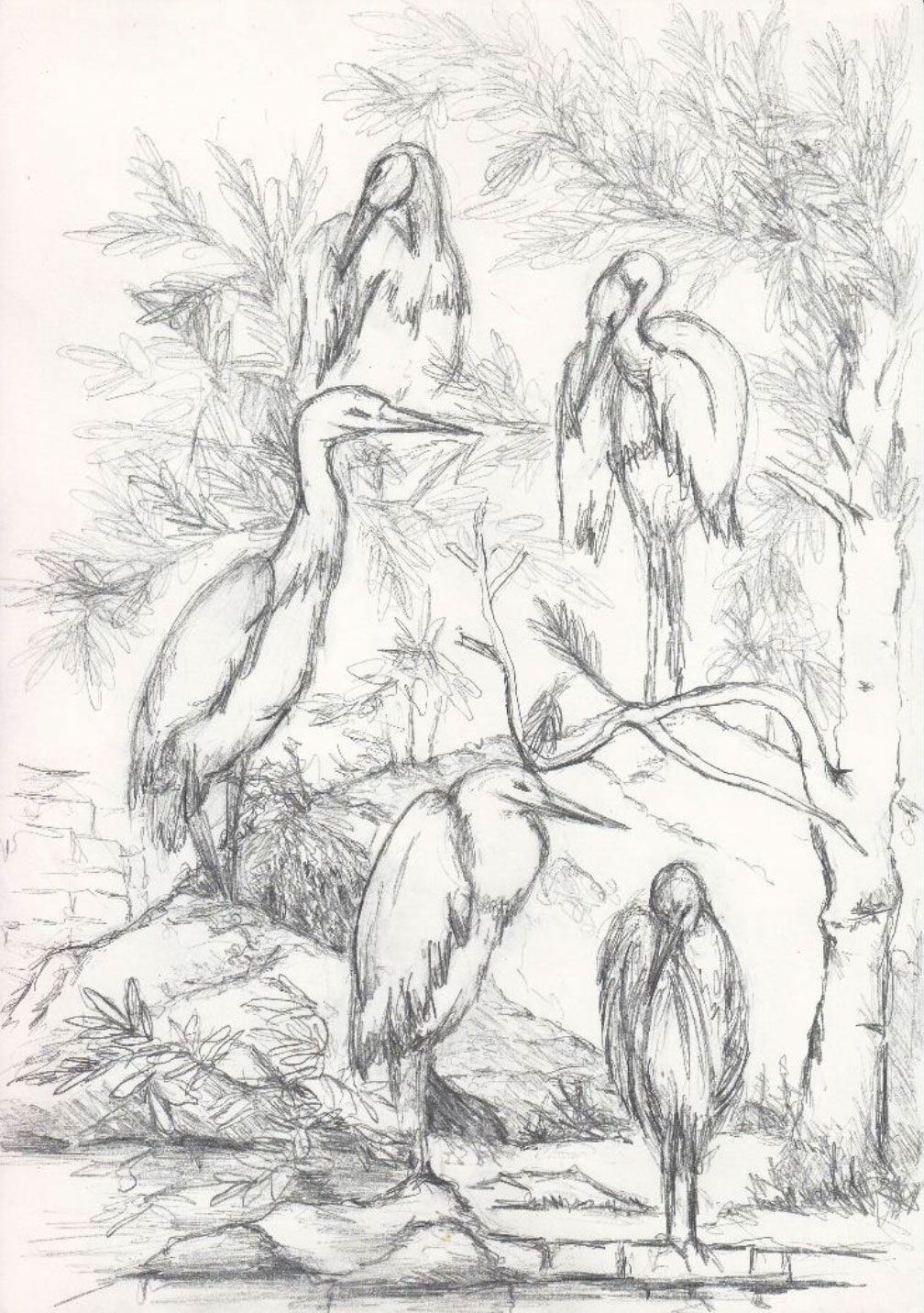 Lange Jahre bin ich der Malerei aus dem Weg gegangen. Zu schwierig für mich, ins Bild zu bringen, was ich fühlte und empfand. Zeichnen ja, das tat ich gern und so begann mein Malen mit Zeichnen. Dann wurde ich immer mutiger und begann meine inneren Geschichten in Bilder zu fassen. Techniken waren: Öl, Aquarell. Farbstift, Acryl, Kohle und Bleistift, sowie Collagen.
